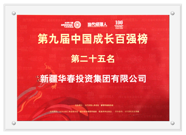 新疆華春投資集團(tuán)有限公司入選“2010中國成長百強(qiáng)”第25名