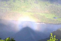 有關專業人士稱,“佛光”是由于當地連日來的大量降雨和天氣的驟然變化造成水氣較大,光線遇到這些水氣折射形成的。真是難得一見的。