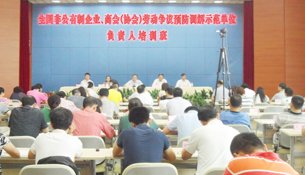 國(guó)家高度重視示范工作的進(jìn)行,由國(guó)家人力資源社會(huì)保障部、人事司、調(diào)解仲裁管理司和中華全國(guó)工商聯(lián),共同組織對(duì)被確定為全國(guó)勞動(dòng)爭(zhēng)議預(yù)防調(diào)解示范單位的負(fù)責(zé)人進(jìn)行集中培訓(xùn)。人社部仲裁管理司、全國(guó)工商聯(lián)、全國(guó)總工會(huì)、上海財(cái)經(jīng)大學(xué)法學(xué)院、中國(guó)人大勞動(dòng)人事學(xué)院教授、上海市人社部仲裁院院長(zhǎng)等領(lǐng)導(dǎo)和專家,從不同角度解讀了在新形勢(shì)下預(yù)防勞動(dòng)爭(zhēng)議的思路和主要任務(wù)及有關(guān)政策、法律知識(shí)、疑難案件的評(píng)析、勞資的協(xié)商等有關(guān)勞動(dòng)關(guān)系、勞動(dòng)爭(zhēng)議的理論知識(shí),以保障示范工作的有效開展。