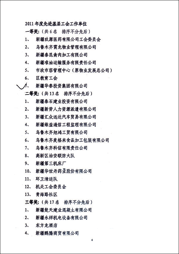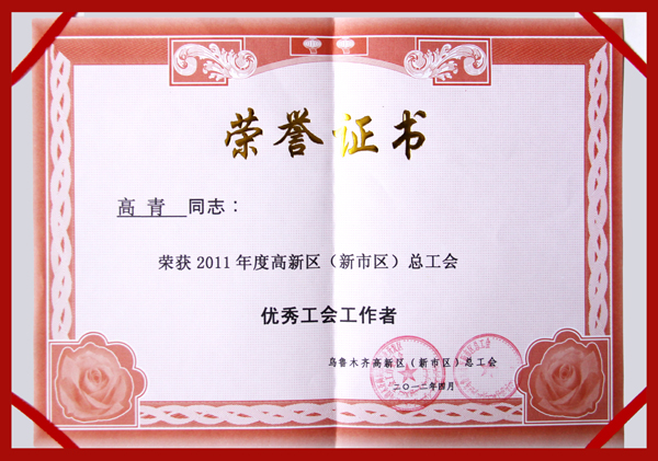 在剛剛結束的工會工作年度評比中,華春工會與華春工會主席高青被高新區(新市區)總工會評為“先進基層工會一等獎”、“優秀工會工作者”,同時榮獲由烏魯木齊市總工會、市安全生產監督管理局評定的“2010-2011年安康杯競賽先進集體”。
