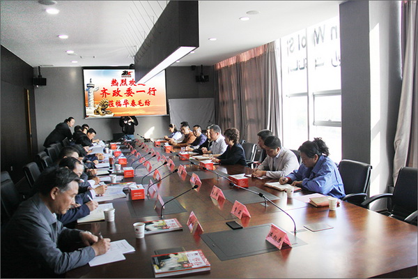 在國慶節(jié)即將到來的前夕,兵團第六師五家渠市黨委書記、政委齊新平帶領(lǐng)師市相關(guān)部門領(lǐng)導(dǎo)一行十多人,到華春毛紡調(diào)研,與華春投資集團部分高管和華春毛紡管理人員進行了座談。華春集團李成功總裁就華春毛紡生產(chǎn)經(jīng)營、產(chǎn)品銷售、員工情況以及遇到的問題等,向齊新平政委一行做了匯報。