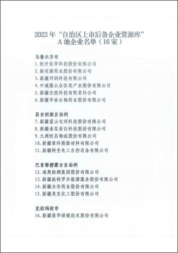 在華春集團迎來28周年華誕節的喜慶時刻,華春生物藥業又迎來重大喜訊——在自治區地方金融監督管理局于4月14日公布的2023年“自治區上市后備企業資源庫”名單中,新疆華春生物藥業股份有限公司連續名列資源庫A池企業名單。真是雙喜臨門,喜悅之情溢于言表!