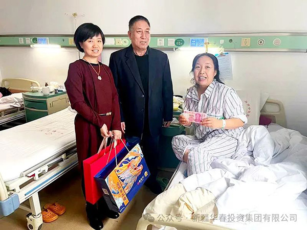 2月5日,當(dāng)新疆華春投資集團(tuán)董事局主席兼總裁李成功先生得知員工金奮榮的妻子患病住院動手術(shù)的消息后,立即委托集團(tuán)副總裁馬生忠與華春小貸總經(jīng)理助理尹海玲前往醫(yī)院看望,為員工金奮榮患病妻子送上3000元慰問金和兩箱慰問品,并送上華春大家庭的親切關(guān)懷之情。
