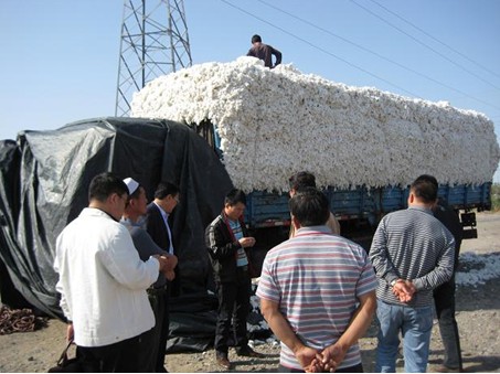 軋花廠工作人員在附近的一個棉花交易市場做調研