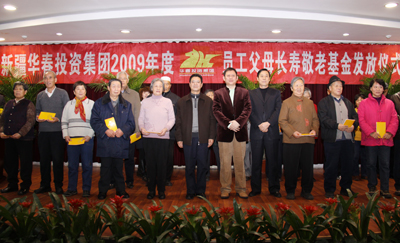 11月25日上午,新疆華春投資集團(tuán)在科學(xué)院質(zhì)量苑賓館舉辦了2009年度員工父母長壽敬老基金的發(fā)放儀式。首次發(fā)放長壽敬老基金22萬多元,近百位華春員工的父母一個(gè)個(gè)手捧著裝有長壽敬老基金的紅包,滿臉洋溢著幸福和喜悅。