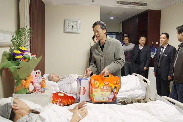11月16日,烏魯木齊高新區(qū)工會主席韓建新一行6人,前往醫(yī)學院住院部看望慰問了為保護公司財產(chǎn),而被昌吉州多斯巴億農(nóng)業(yè)開發(fā)有限責任公司打傷的烏魯木齊市華春商貿(mào)有限公司7名員工。