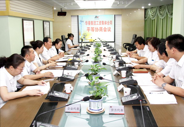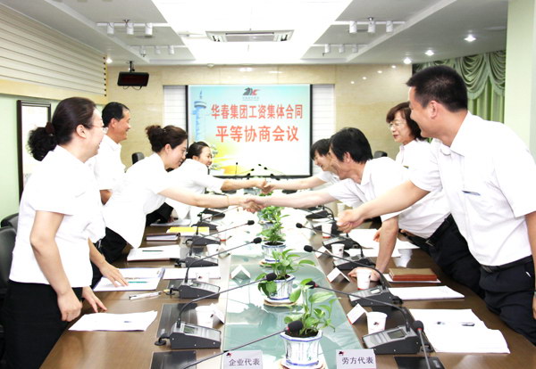 華春投資集團(tuán)企業(yè)方代表與職工方代表在前幾次協(xié)商的基礎(chǔ)上,于6月9日召開(kāi)了正式的三項(xiàng)集體合同平等協(xié)商會(huì)議。勞資雙方都本著從整體上維護(hù)員工的合法權(quán)益、構(gòu)建和諧的勞資關(guān)系、促進(jìn)企業(yè)生產(chǎn)經(jīng)營(yíng)秩序良好發(fā)展的原則,嚴(yán)格按照集體合同訂立的程序,就三項(xiàng)集體合同有關(guān)條款內(nèi)容又一次進(jìn)行了全面、仔細(xì)、坦誠(chéng)、熱烈、深刻的平等協(xié)商對(duì)話,達(dá)成了共識(shí),達(dá)到有利于雙方的預(yù)期,最終擬定了集體合同草案。此次平等協(xié)商會(huì)議由華春投資集團(tuán)工會(huì)主席高青主持。