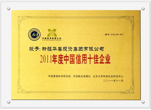 華春投資集團以誠實守信、服務社會為企業的根本準則,在生產經營過程中,不僅對所有的產品質量負責、對內部的員工負責、對股東負責,而且對客戶負責、對社會負責。為促進新疆經濟發展和社會穩定做出了大量的、卓有成效的工作。在2011年度的“3.15”國際消費者權益日,華春投資集團被烏魯木齊高新區消費者協會評為2011-2012年度“消費維權誠信單位”,并頒發了榮譽獎牌。