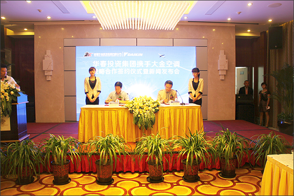 6月27日,新疆華春投資集團與世界著名空調品牌——大金空調在新疆烏魯木齊正式簽約,達成戰略合作意向,雙方將通過新疆地標性地產項目——御宮華府的合作,共同為烏魯木齊市民打造舒適、健康、節能的高品質居住空間。